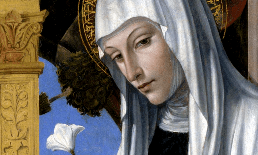 Bereits ein Blick auf das Gemälde von Andrea Vanni in der Basilika San Domenico in Siena lässt etwas von dieser Rätselhaftigkeit erahnen. Dargestellt mit einer Lilie in der Hand und einer vor ihr knienden Person wirkt sie gegenwärtig und zugleich wie aus einer anderen Welt. Es scheint, als würden sich Diesseits und Jenseits, Zartheit und Kraft, geduldige Güte aber auch drängende und befehlende Autorität ganz harmonisch in ihr begegnen. Sie „gebietet“ Stefano Maconi Kartäuser zu werden (Prozess, S. 385), „drängt und befiehlt“ einer Äbtissin (Brief 30) und erklärt der Königin von Neapel, dass sie der Stock „hart treffen“ werde (Brief 312), wenn sie sich gegen Gott auflehnt – und im selben Atemzug schreibt sie: Ich bin eine „durch Christi Blut freigekaufte Sklavin“ und bereit, mein Leben „für die Wahrheit hinzugeben“ und für jene, „die Gott mir gegeben hat“ (Brief 206). Sie hält den Adressaten ihrer Briefe einen Spiegel vor Augen und drängt sie zur Umkehr, um dann im nächsten Augenblick deren Fehler ihrer eigenen Sündhaftigkeit zuzuschreiben, mit dem Versprechen, für die Wiedergutmachung selber in die Schranken zu treten – wenn nötig sogar unter Einsatz ihres eigenen Lebens.
